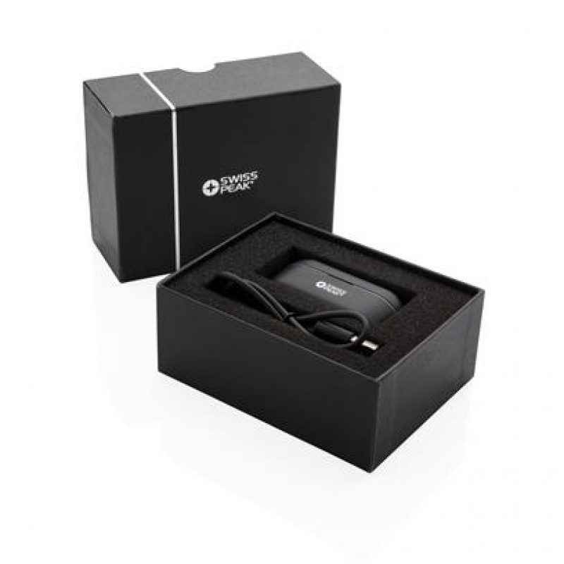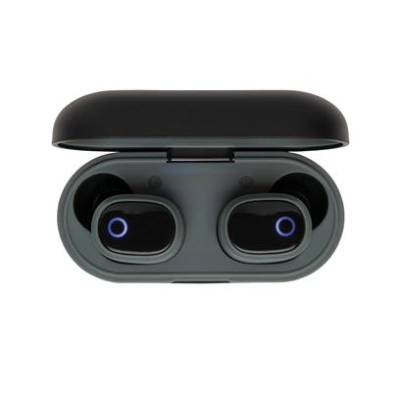 Ultimate freedom while listening to your favorite music with these true wireless earbuds. Simply pair both ABS earbuds to listen to your music or answer calls both in stereo sound. The earbuds come in a compact 500 mah charging case that allows you charge and take your earbuds wherever you go. The earbuds use BT 5.0 for automatic pairing without any hassle and a stable connection. The earbuds have a 50 mAh battery that allows a play time of up to 3 hours and can be re-charged in 2 hours in the charging case. The wireless distance range is up to 10 metres. Including different size ear tips.