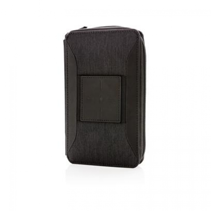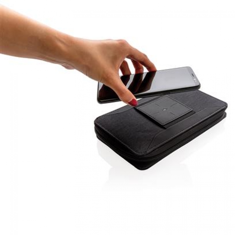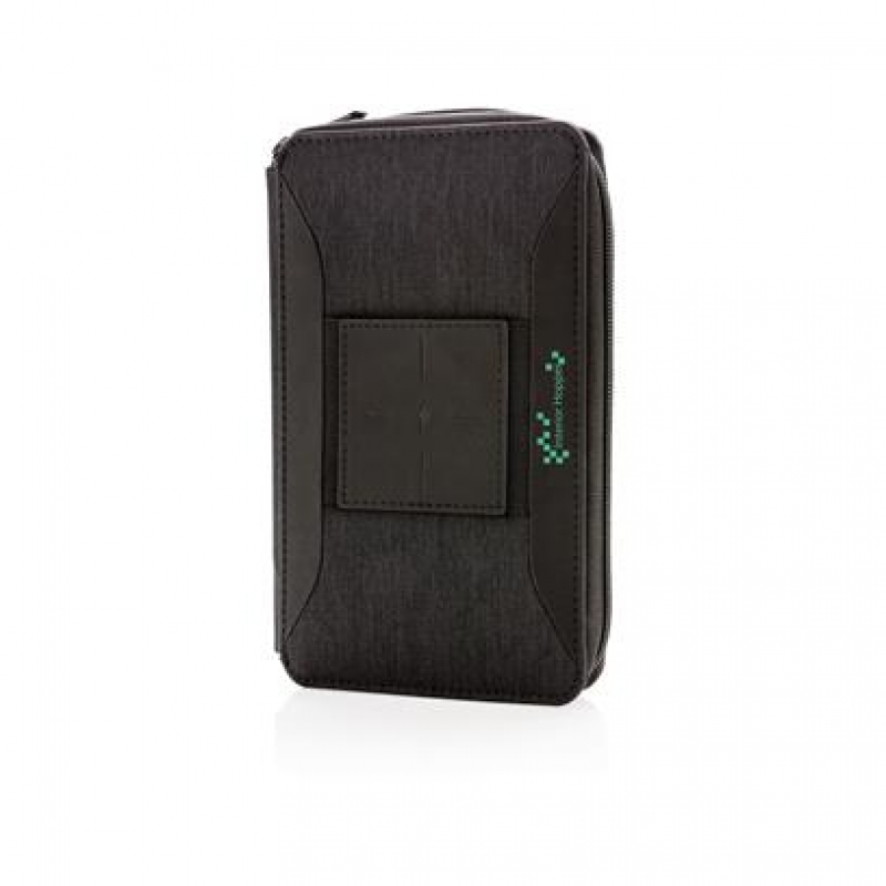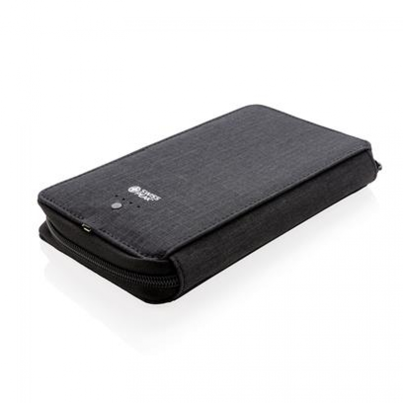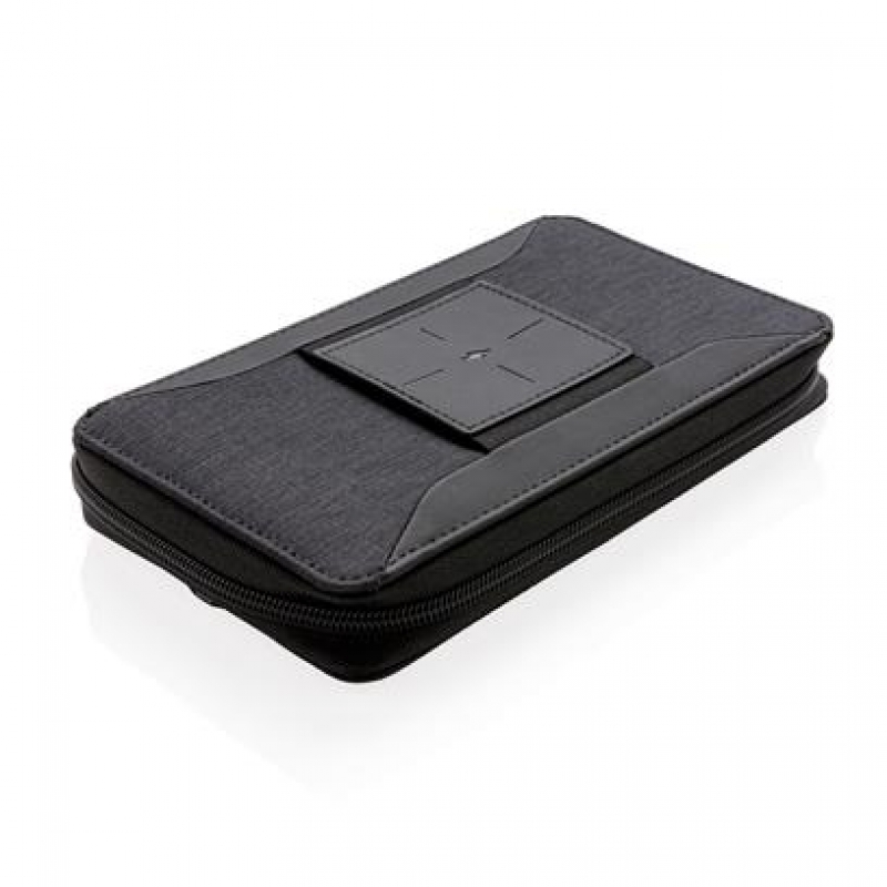 Ultimate travel wallet with RFID protection keeps all your travel documents such as passport, tickets and money safe. Includes 4000 mAh wireless powerbank with integrated micro, lightening and type-c cable. Compatible with all QI enabled devices like Android latest generation, iPhone 8 and up. Input: 5.0V/1.0A. Output: 5.0V/2.1A. Wireless Output: 5W.
