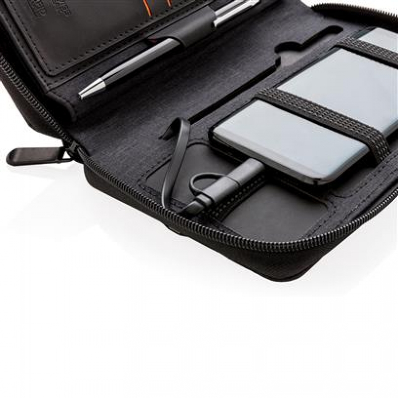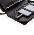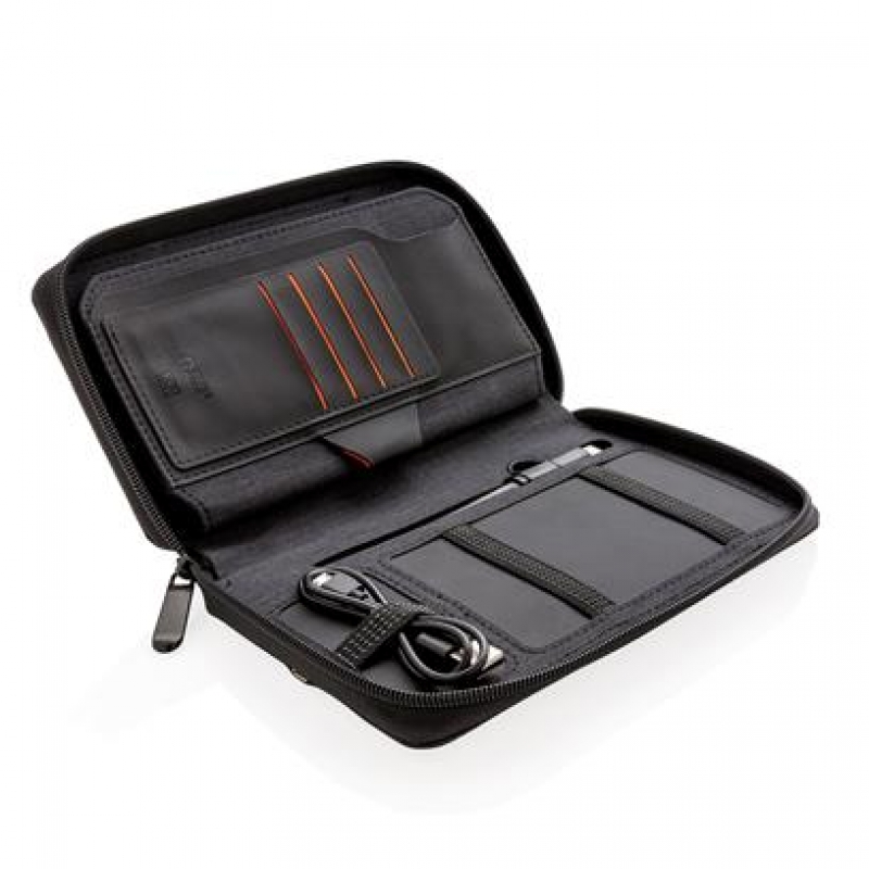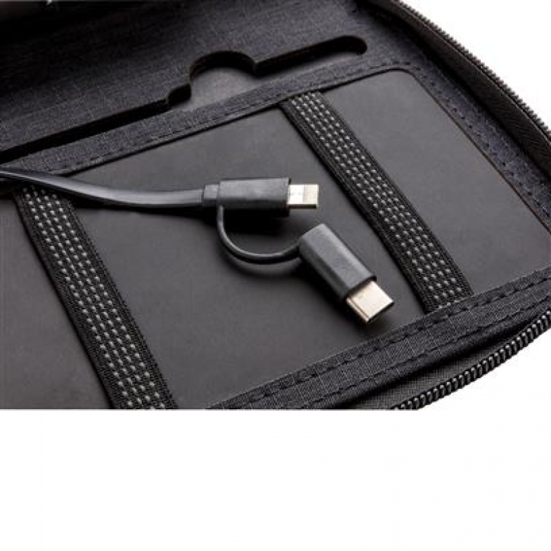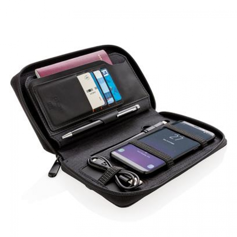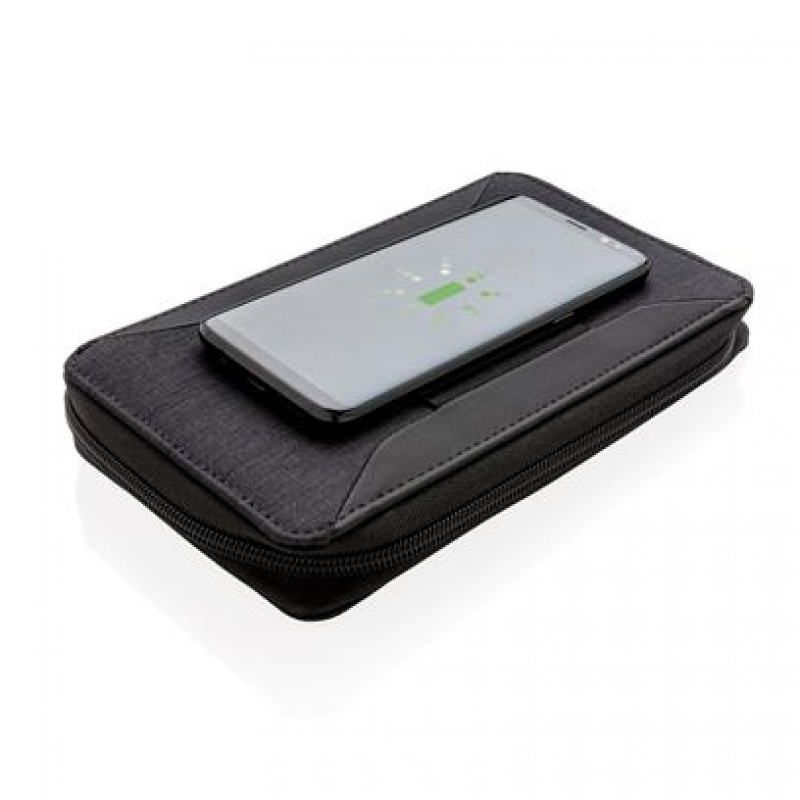 Ultimate travel wallet with RFID protection keeps all your travel documents such as passport, tickets and money safe. Includes 4000 mAh wireless powerbank with integrated micro, lightening and type-c cable. Compatible with all QI enabled devices like Android latest generation, iPhone 8 and up. Input: 5.0V/1.0A. Output: 5.0V/2.1A. Wireless Output: 5W.